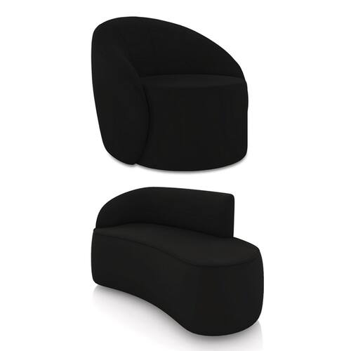 O Kit Sofá 2 Lugares Orgânico 140cm Morgan e Poltrona Lua é um verdadeiro convite ao relaxamento! Ele possui um design orgânico que remete às formas encontradas na natureza que além de se moldar ao corpo humano, evoca uma sensação de calma e equilíbrio criando um espaço acolhedor e relaxante. O revestimento desse maravilhoso conjunto conta com um tecido extremamente elegante no Veludo Preto, suportando em média até 180 kg de peso, podendo ser utilizado por pessoas de diferentes biotipos. A Poltrona Lua contém uma simetria artística e curvas suaves, ela contém uma Base Giratória com giro em 360 graus e uma estrutura em madeira de reflorestamento eucalipto, que garante a resistência e a sustentabilidade do produto. Ela tem um acabamento reforçado e espuma de qualidade D23, que oferece maciez e conforto. Ela contém detalhes de costura no encosto e um assento cilíndrico arredondado resultando em um acabamento perfeito conferindo muito mais valor e personalizado ao produto, oferecendo maior liberdade de movimento ao cliente. O Sofá Morgan por sua vez é uma combinação perfeita de conforto e estilo. Com uma estrutura robusta de madeira de eucalipto e MDF, este sofá garante durabilidade e resistência. Os assentos e encostos são fixos, o encosto é preenchido com espuma D-20, proporcionando suporte ideal para suas costas, enquanto o assento com espuma D-23 oferece uma experiência de assento firme e aconchegante. Seu formato curvo e sem braços traz um toque de modernidade, permitindo que o sofá se encaixe harmoniosamente em diversos estilos de decoração, desde o minimalista até o mais ousado. As sapatas plásticas são pequenas proteções colocadas na base dos pés do sofá para evitar que eles risquem ou danifiquem o chão. Além de proteger o piso, essas sapatas ajudam a distribuir o peso do sofá de maneira mais uniforme. Esse lindo conjunto pode ser utilizado em salas de estar, recepções, escritórios, lojas, espaços comerciais, ou qualquer outro espaço que você queira decorar com estilo e bom gosto. O kit Sofá Morgan e Poltrona Lua é um produto que vai fazer a diferença na sua decoração e no seu bem-estar. Ele vai trazer charme, conforto e durabilidade para o seu ambiente. Corra e garanta a sua agora mesmo!
