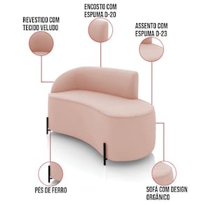 Sofá 2 Lugares Orgânico 140cm Pé Ferro Preto Morgan Veludo D03 - D`Rossi - Rosê