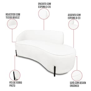 O Sofá 2 Lugares Orgânico Morgan de 140 cm, é a combinação perfeita de conforto e estilo. Com uma estrutura robusta de madeira de eucalipto e MDF, este sofá garante durabilidade e resistência. Os assentos e encostos são fixos, o encosto é preenchido com espuma D-20, proporcionando suporte ideal para suas costas, enquanto o assento com espuma D-23 oferece uma experiência de assento firme e aconchegante. O design orgânico remete às formas encontradas na natureza como ondas, folhas ou conchas que além de se moldarem ao corpo humano, evocam uma sensação de calma e equilíbrio. Seu formato curvo e sem braços traz um toque de modernidade, permitindo que o sofá se encaixe harmoniosamente em diversos estilos de decoração, desde o minimalista até o mais ousado. A fluidez das linhas cria um ambiente acolhedor e convidativo, perfeito para qualquer ocasião. Os pés de ferro, além de fornecerem estabilidade, trazem um toque industrial que contrasta lindamente com o elegante revestimento em Bouclê na sofisticada cor Off White. Seja para receber amigos, relaxar após um dia longo ou simplesmente adicionar um toque de elegância ao seu lar, o Sofá Orgânico é a escolha ideal. Não perca a oportunidade de elevar a decoração da sua casa com esta peça única. Adquira já o seu e descubra o que é conforto e estilo em um só lugar!