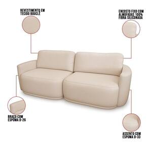 Sofá 2 Lugares Orgânico 194cm Modulado Para Sala Brumma Bouclê K01 - D'rossi Cor Bege O Sofá 2 Lugares Brumma de 194cm é a escolha perfeita para quem busca conforto, design orgânico e versatilidade para a sala. Com revestimento em tecido bouclê macio e sofisticado, ele garante um toque agradável ao toque e estilo moderno ao ambiente. Sua estrutura resistente em madeira de eucalipto oferece durabilidade, enquanto o assento fixo em espuma D-33 proporciona conforto superior no dia a dia. O encosto fixo com enchimento 100% em fibra siliconada conta com almofadas soltas e removíveis. Com módulos independentes que podem ser realocados facilmente, o Sofá Brumma permite diferentes composições para decorar seu espaço do jeito que desejar. Os pés em madeira fixados garantem estabilidade e acabamento refinado. Ideal para quem quer unir funcionalidade, design inteligente e aconchego, o Sofá Brumma transforma sua sala com elegância e praticidade. Aproveite para renovar sua decoração com este sofá modular, confortável e durável! Dimensões Gerais (2 módulos): Altura Total: 90 cm Largura Total: 194 cm Profundidade Total: 103 cm Peso Total: 64 kg Dimensões por Módulo de Assento (com braço lLateral): Altura: 90 cm Largura por Módulo: 97 cm Profundidade: 103 cm Altura do Chão ao Assento: 45 cm Largura útil do Assento: 80 cm Profundidade útil do Assento: 55 cm Altura do Encosto (a partir do assento): 41 cm Espessura de cada braço lLateral: 17 cm Peso por módulo: 32 kg Especificações do Produto: Estrutura: Madeira de Eucalipto ; Reforços com cantoneiras e chapas em MDF Base Interna do Encosto: Percintas elásticas Base Interna do Assento: Percintas elásticas + molas espirais Espuma do Assento: D-33 (alta qualidade) Espuma do Braço: D-26 (alta qualidade) Revestimento: Bouclê Possui Pés: Sim Material dos Pés: Madeira na cor , fixados com parafusos Possui Rodízios: Não Peso Suportado: Até 150 Kg por assento Tipo de Encosto: Fixo, preenchido com 100% fibra siliconada e almofada solta Tipo de Assento: Fixo Modularidade: Módulos independentes que podem ser realocados conforme o espaço disponível Quantidade de Assentos: 2 É Retrátil: Não É Reclinável: Não Diferenciais: Design Modular e Versátil Sistema de Montagem: Não Manual de Montagem Incluso: Não requer montagem estrutural Complexidade da Montagem: Baixa Montagem: O produto vai montado, sendo necessário apenas o encaixe dos módulos. Garantia: 90 dias contra de fabricação Instruções de Limpeza: Utilizar um pano limpo e levemente úmido Quantidade de Volumes: 2 Caixas Medida das Embalagens: Caixa 1: 109x105x77cm; Caixa 2: 109x105x77cm : É feita somente até o térreo ou portaria. Confira sempre as medidas das embalagens para assegurar que o produto passe por portas e escadas do .