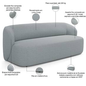 Revestimento em tecido Linho de alta qualidade na tonalidade Cinza.