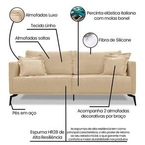 O Sofá 2 Lugares Rafaela é uma mobília que combina elegância, conforto e durabilidade. Ele tem um design moderno e sofisticado, com pés em aço carbono, e revestimento em tecido Linho Dourado, que harmonizam com qualquer ambiente. Ele é ideal para sala de estar, recepções ou qualquer outro espaço que você queira decorar com estilo e bom gosto. Ele tem uma estrutura em madeira de reflorestamento eucalipto, que garante a resistência e a sustentabilidade do produto. Com medidas de 180 cm ele suporta até 140 Kg de peso, podendo ser utilizado por pessoas de diferentes biotipos. Ele tem um acabamento reforçado com espuma de qualidade no encosto D23 e plumante em silicone, que oferece maciez e aconchego. Acompanha Almofadas soltas em fibra de silicone. Ele tem assento Fixo com inúmeras elásticas italiana, molas bonnel e espuma HR 28 e plumante em silicone, que proporcionam flexibilidade e conforto. Tem pés em aço carbono, alt.18 cm, cor preto, que protegem o produto contra corrosão e desgaste. O sofá Rafaela é um produto de alta qualidade, beleza e funcionalidade. Ele é fácil de transportar, pois tem um peso leve e um tamanho compacto. O sofá Rafaela é um produto que vai fazer a diferença na sua decoração e no seu bem-estar. Ela vai trazer charme, conforto e durabilidade para o seu ambiente. Aproveite essa oferta e leve para casa um sofá de qualidade por um preço incrível. Essa é a sua chance de ter um sofá maravilhoso por um preço imperdível. Corra e garanta o seu antes que acabe o estoque.