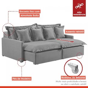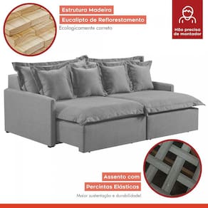 Para promover aconchego e bem-estar aos seus cantinhos preferidos, conte com a maciez que só o Sofá M145 pode oferecer. Graças ao design, ele é perfeito para trazer o charme que falta ao seu lar-style enquanto acomoda familiares e amigos para aquela conversa gostosa em um final de tarde ou sessão de filmes no fim de semana. Para melhorar, ele ainda tem assento retrátil, que ajuda a proporcionar um relaxamento mais pleno, e encosto reclinável, que deixa aquele cochilo depois do almoço bem mais confortável. Acompanha Almofadas extras: 04 Almofada do assento: Fixa Almofada do encosto: Removível Altura do assento até o chão: 48 Altura do Encosto: 33 Altura dos Pés: 2 Ambiente Principal: Sala de Estar Complexidade da Montagem: Cor: Linho/Cinza Claro Cor do Produto: Linho/Cinza Claro Densidade do Assento: D-28 Densidade do Encosto: D-18 Enchimento do Assento: Espuma Enchimento do Encosto: Fibra Siliconada Estilo de Braço: Braços Quadrados Firmeza do Assento: Firme Informações Complementares: Assento Retrátil Com Pillow Top De 20 Cm Itens Inclusos: 1 Sofá e Manual de montagem. Largura do Sofá Maior: Linha ou Coleção: Manual de Especificação Técnica: Manual de Montagem e Instalação: https://cdn2.madeiramadeira.com.br/atributo/martins-estofados/900924-manual-de-montagem-martins.pdf Material dos Pés: Madeira Montagem Flex: Necessita Montagem: Não Origem do Produto: Nacional Peso: 90 Pet Friendly: Não Possui Percintas Elásticas: Sim Possui Pés: 08 Possui Rodízio: Sim Profundidade Quando Estendido: cm Recomendações de Uso, Manutenção e Limpeza: Não use produtos químicos, eles podem danificar o revestimento; Resistente à Chuva: Não Revestimento do Braço: Linho Rodízio com Trava: Não Sistema de Montagem: Suporta Até (kg): 120 Tamanho: Tecido Predominante: Linho Tipo de Encosto: Fixo Tipo de Madeira Maciça da Estrutura: Tipo de Mola: Molas Bonnel