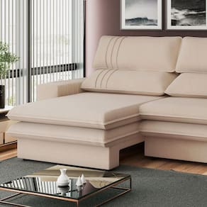 A vantagem de ter um Sofá Noruega não é apenas pela estética, mas sim pelo conforto proporcionado por ele enquanto você descansa. De acordo com especialistas, os maiores problemas de dores nas costas, além da má postura dos vícios do dia a dia, é dado pelo uso constante de sofá com péssima qualidade e acabamento. E pensando no seu bem estar e na prevenção de doenças relacionadas à coluna, a dica de hoje é o Sofá Juti, pois a excelência na qualidade começa desde a escolha dos materiais até a entrega do produto. Suas medidas são de 230 cm, estrutura em madeira de reflorestamento tratada (eucalipto). Percintas elásticas no encosto, percintas elásticas com molas ensacadas no assento. Assento retrátil com espuma D-26 de alta densidade, permitindo uma melhor sustentação. Encosto 100% de fibra siliconada, braços com espuma D-23 de excelente qualidade. Encosto reclinável com catraca de ativação em até 4 posições e Pés de Plástico Tabaco que traz muita segurança e conforto. Revestido com tecido veludo no tom Off White possibilitando uma enorme suavidade ao toque. Ideal para acomodar toda a sua família! E aí, ainda tem dúvida sobre a escolha do seu sofá? Teremos prazer em ajudar!