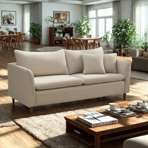 Estrutura em madeira de eucalipto maciça proveniente de reflorestamento, revestimento em linho, pés em madeira de eucalipto.Vendido e entregue por MadeiraMadeira