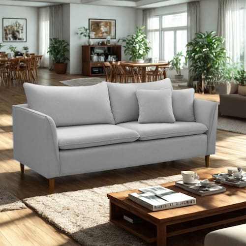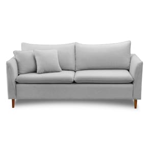 Estrutura em madeira de eucalipto maciça, revestimento em linho, enchimento em espuma D26 e fibra de silicone, pés em madeira de eucalipto.Vendido e entregue por MadeiraMadeira