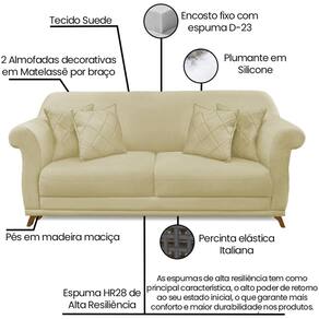 Modelo: Sofa 2 Lugares Retro Polo 180cm Com Almofada Suede Pés: Madeira Maciça Assento: Fixo com espuma D23 e plumante em silicone Encosto: Fico com percintas elásticas italiana, espuma HR28 e plumante em silicone Sistema de Montagem: Necessário fixar os pés