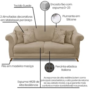 O Sofá Polo é uma ótima escolha para proporcionar o máximo de conforto e beleza ao seu espaço. Com um toque retrô clássico, possui 180cm de largura e revestimento em suede aveludado, que oferece uma textura suave e agradável ao toque. Os pés em madeira maciça garantem durabilidade e resistência. Seu encosto fixo é confeccionado em espuma D23 e plumante de silicone, proporcionando suporte e maior comodidade ao uso. O assento fixo é composto por percintas elásticas italianas e espuma HR28 de alta resiliência, que se destaca pelo retorno rápido à sua forma, aliando conforto e longa vida útil ao produto. Acompanha charmosas almofadas decorativas com enchimento em fibra de silicone e acabamento em matelassê, agregando ainda mais estilo e aconchego. Este móvel chegará em sua casa separado em 01 volume.
