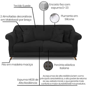 Sofa 2 Lugares Retro Polo 180cm Com Almofada Suede 1105 Ezz - Preto