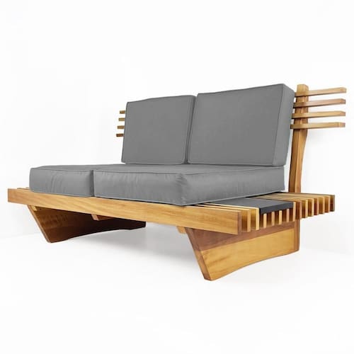 Itens inclusos: 2 Almofadas assento, 2 Almofadas Encosto, 1 sofá de Madeira Nobre de Grapia.