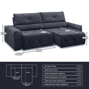O Houston não é apenas um móvel, é um convite pra transformar a rotina em puro conforto. Seu visual imponente traz presença, enquanto o toque macio e o apoio firme acolhem corpo e mente. O assento retrátil amplia o espaço, e o encosto reclinável em 5 posições ajusta-se ao seu relax. Destaques: encosto reclinável, almofadas fixas, costura matelassê, assento retrátil até 1,60m, mola bonel e espuma D26 com camada soft, rodízios em silicone, estrutura em madeira maciça e suporte até 150kg por módulo. Produto Montado: Sim Acompanha Almofadas extras: Não Almofada do assento: Fixa Almofada do encosto: Removível Altura do assento até o chão: 45.0000 Altura do Encosto: 45 cm Altura dos Pés: 3 cm Altura Máxima dos Pés: 3.0000 Ambiente Principal: Sala de Estar codigo_ean: 7900288206947 Complexidade da Montagem: Baixa: pode ser montado por uma pessoa sozinha Cor: Cinza Cor do Produto: Cinza Estilo de Braço: Braços Pillow Top Informações Complementares: Almofadas acompanham a cor do sofá. Itens Inclusos: 1 Sofá e Kit Ferragens Linha ou Coleção: Houston Manual de Especificação Técnica: https://product-hub-prd.madeiramadeira.com.br/965132517/documents/2a6c324d-989a-4ccf-8257-7ada1698e06f2969199643817488816076255.pdf Manual de Montagem e Instalação: https://product-hub-prd.madeiramadeira.com.br/965132517/documents/8872df1d-b549-46ce-b8dd-261e42b84844afbcb96b0bd476a21747939242.pdf Marca: Apolo Estofados Material dos Pés: Plástico Montagem Flex: Encaixe de encostos, pés e rodízios Necessita Montagem: Sim Origem do Produto: Nacional Peso: 80 kg Pet Friendly: Não Possui Percintas Elásticas: Sim Possui Pés: 04 Possui Rodízio: Sim Profundidade Quando Estendido: 160 cm Profundidade quando extendido: 160.0000 Recomendações de Uso, Manutenção e Limpeza: Recomenda-se aspirar regularmente o sofá para manter o tecido livre de poeira. Em caso de manchas, utilize um pano limpo e umedecido, evitando esfregar com força. Sempre teste produtos de limpeza em uma área discreta antes do uso. Tecidos como microfibra, poliéster e modelos com proteção antimanchas são mais práticos para o dia a dia. Sistema de Montagem: O sofá é enviado com um kit contendo 4 pés, 4 rodízios e os parafusos correspondentes, acondicionados em saco plástico. Para montagem, fixe os pés nos quatro cantos da base, garantindo que estejam apoiados sobre a madeira de reforço. Em seguida, parafuse Suporta Até (kg): 150 kg Tecido Predominante: Boucle Tipo de Encosto: Regulável Tipo de Mola: Molas Bonnel Tipo de Sofá: Sofá Comum