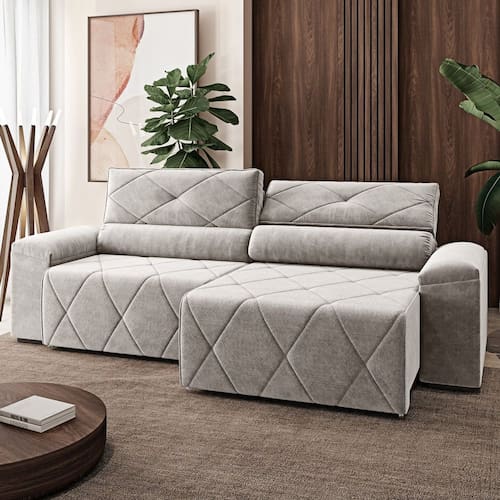 O Houston não é apenas um móvel, é um convite pra transformar a rotina em puro conforto. Seu visual imponente traz presença, enquanto o toque macio e o apoio firme acolhem corpo e mente. O assento retrátil amplia o espaço, e o encosto reclinável em 5 posições ajusta-se ao seu relax. Destaques: encosto reclinável, almofadas fixas, costura matelassê, assento retrátil até 1,60m, mola bonel e espuma D26 com camada soft, rodízios em silicone, estrutura em madeira maciça e suporte até 150kg por módulo. Produto Montado: Sim Acompanha Almofadas extras: Não Almofada do assento: Fixa Almofada do encosto: Removível Altura do assento até o chão: 45.0000 Altura do Encosto: 45 cm Altura dos Pés: 3 cm Altura Máxima dos Pés: 3.0000 Ambiente Principal: Sala de Estar codigo_ean: 7900288206053 Complexidade da Montagem: Baixa: pode ser montado por uma pessoa sozinha Cor: Nevoa Cor do Produto: Nevoa Estilo de Braço: Braços Pillow Top Informações Complementares: Almofadas acompanham a cor do sofá. Itens Inclusos: 1 Sofá e Kit Ferragens Linha ou Coleção: Houston Manual de Especificação Técnica: https://product-hub-prd.madeiramadeira.com.br/809921801/documents/08e4e126-2e3c-4d9b-87f5-a359555d25c72969263643817488832525607.pdf Manual de Montagem e Instalação: https://product-hub-prd.madeiramadeira.com.br/809921801/documents/95c83484-1c1b-4e30-bf19-00db341a6858afbcb96b0bd476a21747939242.pdf Marca: Apolo Estofados Material dos Pés: Plástico Montagem Flex: Encaixe de encostos, pés e rodízios Necessita Montagem: Sim Origem do Produto: Nacional Peso: 80 kg Pet Friendly: Não Possui Percintas Elásticas: Sim Possui Pés: 04 Possui Rodízio: Sim Profundidade Quando Estendido: 160 cm Profundidade quando extendido: 160.0000 Recomendações de Uso, Manutenção e Limpeza: Recomenda-se aspirar regularmente o sofá para manter o tecido livre de poeira. Em caso de manchas, utilize um pano limpo e umedecido, evitando esfregar com força. Sempre teste produtos de limpeza em uma área discreta antes do uso. Tecidos como microfibra, poliéster e modelos com proteção antimanchas são mais práticos para o dia a dia. Sistema de Montagem: O sofá é enviado com um kit contendo 4 pés, 4 rodízios e os parafusos correspondentes, acondicionados em saco plástico. Para montagem, fixe os pés nos quatro cantos da base, garantindo que estejam apoiados sobre a madeira de reforço. Em seguida, parafuse Suporta Até (kg): 150 kg Tecido Predominante: Boucle Tipo de Encosto: Regulável Tipo de Mola: Molas Bonnel Tipo de Sofá: Sofá Comum