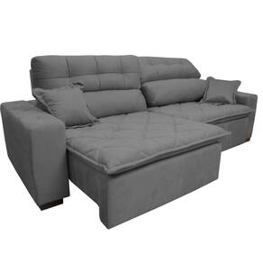 Sofá 2,12m Retrátil E Reclinável Com Molas Cama Inbox Confort Tecido Suede Velft Cinza