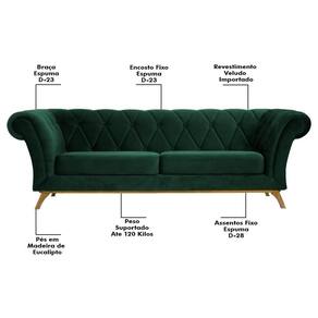 Altura: 77 cm | AssemblyRequired: Sim, sugerimos a contratação do nosso serviço de montagem (para os CEPs em que o serviço está dispon | Color: Verde Musgo | ColorFamily: Verde Musgo | ColorSimple: Verde Musgo | ColorSupplier: Verde Musgo | Cor: Verde Musgo | Gênero: Unisex | Largura: 230 cm | Manual: Sim | Marca: Domi | Material: Madeira Eucalipto | MaterialFamily: Madeira Eucalipto | Model: Império | Origem: | OriginCountry: | OriginState: PR | Peso: 45 kg | Peso Suportado: 120 Kg sem impacto. | ProductContents: 1 Sofá | ProductHeight: 77 | ProductInstructions: Produto para uso em ambiente interno, nao devendo ficar exposto ao sol, calor e umidade excessivos. | ProductLength: 87 | ProductWarranty: 90 dias após o do produto | ProductWeight: 45 | ProductWidth: 230 | Profundidade: 87 cm | Requere montagem: Sim | SizeDescription: 77 x 230 x 87 cm | SupplierSimpleName: Sofá 230cm 3 Lugares Base Madeira Império C-303 Veludo Verde Musgo - Domi | Tipo de : Fabricante