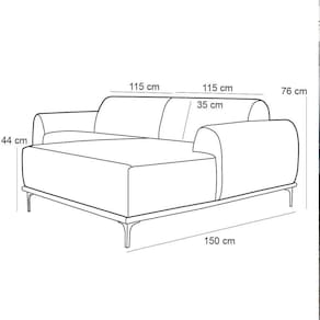 Largura do assento: sofá: 115 cm/ chaise: 115 cm.