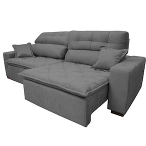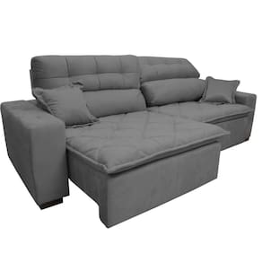 Sofá 2,52m Retrátil E Reclinável Com Molas Cama Inbox Confort Tecido Suede Velusoft Cinza
