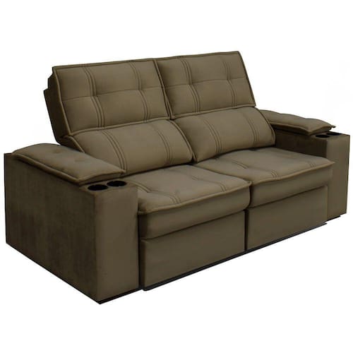 Características: Modelo: Ferrara Referência de modelo: 3016 Estrutura: Madeira de eucalipto Acabamento: Tratada e aparelhada, com reforços de cantoneiras. Chapas OSB Tecido: Veludo Percintas: Elásticas Assento: Percintas elásticas e espuma D23 Encosto: Percintas elásticas e fibras siliconadas mistas com flocos de espumas Braços: Espuma D20 Molas: Espirais e ensacadas Reclinagem: 5 estágios Capacidade de carga: até 100kg por assento Pés: Polipropilaeno Altura dos pés: 3 cm Diferenciais: Porta copos Forma de envio: Produto entregue em 2 volumes Marca: Gralha Azul