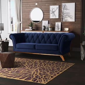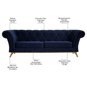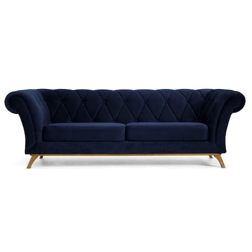 Sofá 260cm 4 Lugares Base Madeira Império C-287 Veludo Marinho - Domi