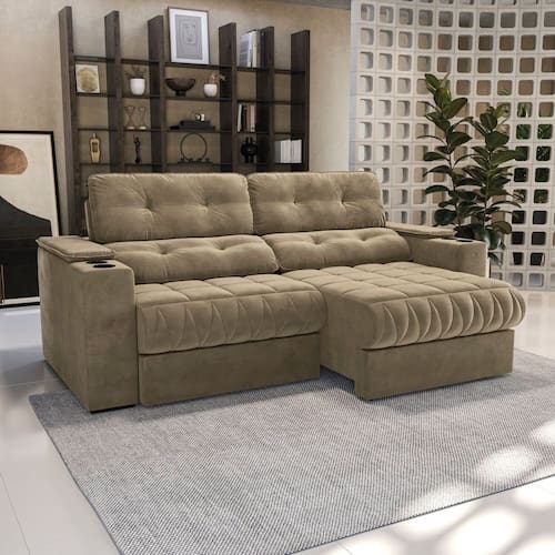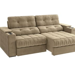 Símbolo de requinte e conforto, aposte no Sofá Premier 2,6m da Kappesberg. Produzido em madeira de eucalipto e MDF, ele conta com assentos retráteis e encostos articuláveis em seis posições, permitindo ajustar conforme a sua preferência. Com molas bonnel nos assentos, espumas certificadas e enchimento com fibras e flocos, ele proporciona o máximo de conforto. E medindo 1,14m de altura, 2,61m de largura e 1,32m de profundidade, suportando até 120kg por assento, essa será a escolha ideal para você. Revestido com tecido Veludo Bege, com um toque suave e gostoso, os destaques são seu assento com detalhe curvo, suas costuras e puxes, e suas almofadas de braço retráteis, contando com descanso de copos, tornando seus momentos especiais. Cada detalhe pensado para transformar seus momentos. Acompanha Almofadas extras: Não Altura do assento até o chão: 51 Altura do Braço: 71 Altura do Encosto: 73 Altura dos Pés: 4 Ambiente Principal: Sala de Estar Cor: Bege Cor do Produto: Bege Firmeza do Assento: Médio Itens Inclusos: 1 Sofá Linha ou Coleção: Estofados Estar Material dos Pés: Polipropileno Necessita Montagem: Não Peso: 95.62 Pet Friendly: Não Possui Percintas Elásticas: Sim Possui Pés: 08 Possui Rodízio: Sim Recomendações de Uso, Manutenção e Limpeza: Para maior durabilidade, orientamos que a limpeza das almofadas e encostos com revestimento em tecido, seja realizada com uma escova de cerdas macias e/ou espanador. Não expor a luz solar ou artificial, assim como utilizar o produto de maneira correta afins de evitar riscos com acidentes e danos ao mesmo. Revestimento do Braço: Suede Veludo Rodízio com Trava: Não Suporta Até (kg): 280 Tecido Predominante: Suede Tipo de Encosto: Regulável Tipo de Mola: Molas Espirais