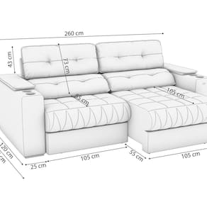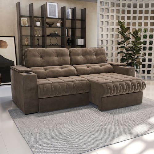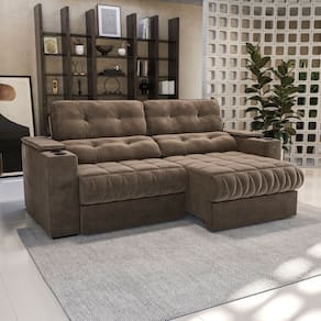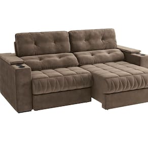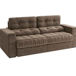 Símbolo de requinte e conforto, aposte no Sofá Premier 2,6m da Kappesberg. Produzido em madeira de eucalipto e MDF, ele conta com assentos retráteis e encostos articuláveis em seis posições, permitindo ajustar conforme a sua preferência. Com molas bonnel nos assentos, espumas certificadas e enchimento com fibras e flocos, ele proporciona o máximo de conforto. E medindo 1,14m de altura, 2,61m de largura e 1,32m de profundidade, suportando até 120kg por assento, essa será a escolha ideal para você. Revestido com tecido Veludo Marrom, com um toque suave e gostoso, os destaques são seu assento com detalhe curvo, suas costuras e puxes, e suas almofadas de braço retráteis, contando com descanso de copos, tornando seus momentos especiais. Cada detalhe pensado para transformar seus momentos. Acompanha Almofadas extras: Não Altura do assento até o chão: 51 Altura do Braço: 71 Altura do Encosto: 73 Altura dos Pés: 4 Ambiente Principal: Sala de Estar Cor: Marrom Cor do Produto: Marrom Firmeza do Assento: Médio Itens Inclusos: 1 Sofá Linha ou Coleção: Estofados Estar Material dos Pés: Polipropileno Necessita Montagem: Não Peso: 95.62 Pet Friendly: Não Possui Percintas Elásticas: Sim Possui Pés: 08 Possui Rodízio: Sim Recomendações de Uso, Manutenção e Limpeza: Para maior durabilidade, orientamos que a limpeza das almofadas e encostos com revestimento em tecido, seja realizada com uma escova de cerdas macias e/ou espanador. Não expor a luz solar ou artificial, assim como utilizar o produto de maneira correta afins de evitar riscos com acidentes e danos ao mesmo. Revestimento do Braço: Suede Veludo Rodízio com Trava: Não Suporta Até (kg): 280 Tecido Predominante: Suede Tipo de Encosto: Regulável Tipo de Mola: Molas Espirais