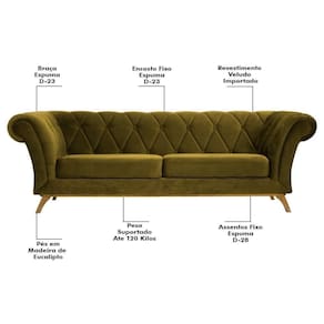 Sendo assim, o Sofá 280cm 4 Lugares Base Madeira Império da Domi é a escolha certeira para compor sua sala de estar! Feito em madeira de Eucalipto, encosto e assentos fixos em espuma de qualidade D-23 e D28, respectivamente, conta com design inovador e moderno para melhor aproveitamento. Além disso a sua composição não para por aí! Seu revestimento em veludo agrega um toque de modernidade ímpar ao cômodo.
