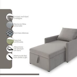 Sofá 3 em 1 Chaise, Cama e Baú Neve Estofama - Bege