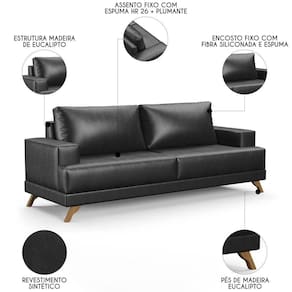 Altura: 90 cm | AssemblyRequired: Sim, sugerimos a contratação do nosso serviço de montagem (para os CEPs em que o serviço está dispon | Color: Preto | ColorFamily: Preto | ColorSimple: Preto | ColorSupplier: Preto | Cor: Preto | Gênero: Unisex | Largura: 180 cm | Manual: Sim | Marca: Mpozenato | Material: Madeira de Eucalipto | MaterialFamily: Madeira de Eucalipto | Model: Santi | Origem: | OriginCountry: | OriginState: PR | Peso: 46 kg | Peso Suportado: 110 Kg | ProductContents: 1 Sofá | ProductHeight: 90 | ProductInstructions: Produto para uso em ambiente interno, nao devendo ficar exposto ao sol, calor e umidade excessivos. | ProductLength: 87 | ProductWarranty: 90 dias após o do produto | ProductWeight: 46 | ProductWidth: 180 | Profundidade: 87 cm | Requere montagem: Sim | SizeDescription: 90 x 180 x 87 cm | SupplierSimpleName: Sofá 3 Lugares 180cm Living Pés Curvos Santi D05 Sintético Preto - Mpozenato | Tipo de : Fabricante