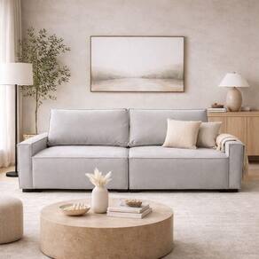 Este sofá contemporâneo de 3 lugares, composto por 2 módulos, é a escolha ideal para quem busca um móvel funcional, elegante e confortável para a sala de estar. Seu design moderno, com linhas retas e visual equilibrado, proporciona harmonia ao ambiente e facilita a composição com diferentes estilos de decoração.