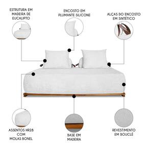 O Sofá 3 Lugares 200cm Ilha Base Madeira Viero S06 Boucle Branco, da Mpozenato é uma escolha excepcional para inovar sua Sala de estar, sala de espera ou escritório!