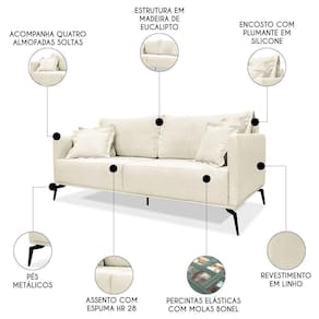 O Sofá 3 Lugares 200cm Pés de Metal Vecchia S06 Linho Natural, da Mpozenato é uma escolha excelente para quem procura conforto, qualidade e design contemporâneo.