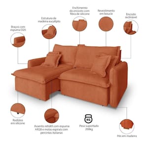 Assento: Retrátil, percintas elásticas italianas, molas bonel, espuma HR28 + plumante em silicone