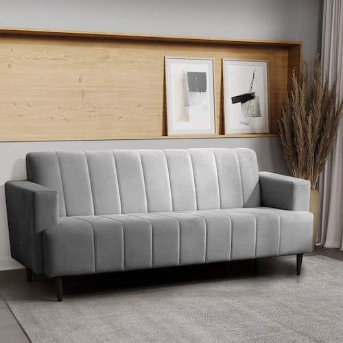 Possui detalhes na costura do encosto e assento. Pés em madeira, na cor preta. O encosto e assento com espuma, trazem mais conforto ao modelo. • Estrutura de madeira de reflorestamento, seca e imunizada; • Espumas utilizadas de fabricação própria. Acompanha Almofadas extras: Não Almofada do assento: Fixa Almofada do encosto: Não Possui Altura do assento até o chão: 43 cm Altura do Encosto: 38 cm Altura dos Pés: 15 cm Ambiente Principal: Sala de Estar Complexidade da Montagem: Baixa: pode ser montado por uma pessoa sozinha Cor: Veludo Cinza Cor do Produto: Veludo Cinza Densidade do Assento: D-28 Enchimento do Assento: Espuma Estilo de Braço: Braços Quadrados Firmeza do Assento: Firme Itens Inclusos: 1 Estofado e manual de montagem Linha ou Coleção: Uvaia Manual de Montagem e Instalação: Material dos Pés: Madeira Necessita Montagem: Sim Origem do Produto: Nacional Peso: 25 kg Pet Friendly: Não Possui Percintas Elásticas: Sim Possui Pés: 05 Possui Rodízio: Não Recomendações de Uso, Manutenção e Limpeza: Remova o pó com uma flanela branca seca. Para situações que demandem limpeza mais profunda, utilize uma flanela branca levemente umedecida em uma solução com água e sabão neutro, retire o sabão com uma flanela levemente umedecida com água. Em seguida, utilize uma flanela seca.Cuidados gerais:• Não borrifar qualquer líquido diretamente no produto, aplicar sempre na flanela • Não utilizar produtos abrasivos como esponja de aço, sapólio, lixa, palha de aço, produtos ácidos ou alcalinos a base de amoníaco e acetona.• Não expor o produto a intempéries, umidade, maresia, luz solar ou luz artificial intensa.• Ao apoiar objetos sobre a superfície do produto, utilize feltro nas bases.• Proteger a superfície de objetos úmidos, quentes, pontiagudos, cortantes e que soltem tinta. Revestimento do Braço: Sim Sistema de Montagem: Apenas montagem dos pés. Suporta Até (kg): 100 kg Tecido Predominante: Veludo Tipo de Encosto: Fixo Tipo de Mola: Não Possui