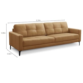 Sofá 3 Lugares 210cm Couro Corbelli Ferguile Transforme sua sala de estar com este sofá 3 lugares em couro Corbelli, que combina design contemporâneo e máxima durabilidade. Sua estrutura em eucalipto assegura firmeza e longa vida útil, enquanto as percintas elásticas no assento trabalham em conjunto com a espuma D-26 e a fibra siliconada para proporcionar suporte ergonômico e extremo conforto. O revestimento em couro Corbelli une toque suave e fácil manutenção, realçando qualquer decoração, e os pés de aço com acabamento refinado garantem estabilidade e um visual moderno. Perfeito para quem busca um sofá espaçoso, resistente e sofisticado, capaz de transformar o ambiente em um refúgio de elegância e aconchego.