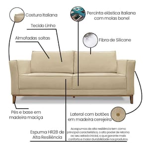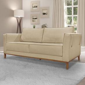 Sofá 3 Lugares 210cm Linho Brest Spezzia Decor Dourado - Amarelo Ouro