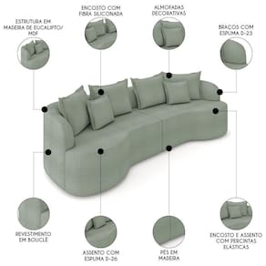 Esse Sofá Orgânico combina elegância de forma única. Feito com madeira de eucalipto e reforços de cantoneiras, ele oferece uma estrutura robusta e durável, enquanto as percintas elásticas no encosto e molas espirais no assento garantem um relaxamento incomparável. Com espumas de alta densidade, D-26 no assento e D-23 nos braços, junto com a fibra siliconada no encosto, o Sofá Living proporciona um toque macio. São 3 lugares confortáveis, e seu revestimento em bouclê trás o charme, além de assento e encosto fixos, e as almofadas decorativas, que são detalhes que fazem toda a diferença. A estabilidade é assegurada pelos pés em madeira na cor , que também simplificam a montagem.