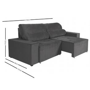Dimensões: Altura: 107 cm Largura: 210 cm Profundidade fechado: 90 cm Profundidade aberto: 127cm Peso: 48,60 kg