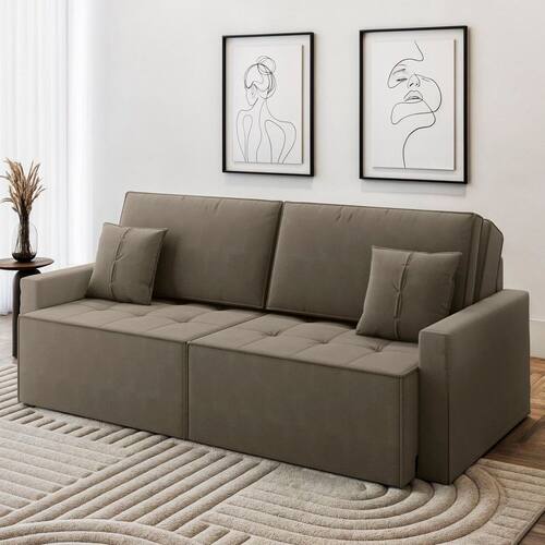 Sofá 3 Lugares 212x100x90 Cm Veludo Tomie Yescasa - Cinza