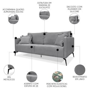 O Sofá 3 Lugares 220cm Pés de Metal Vecchia S06 Linho Cinza, da Mpozenato é uma escolha excelente para quem procura conforto, qualidade e design contemporâneo.