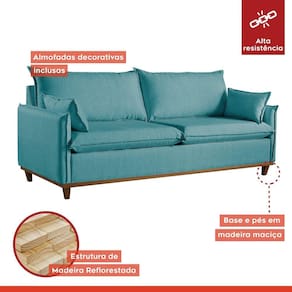 Sofá 3 Lugares 240cm M168 em Linho Living Verde