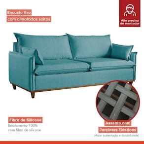 Informações Complementares: * Assento almofadas soltas espuma de 10cm D-28 soft * Encosto fixo 100% fibras de silicone - almofadas Soltas* Braços 9cm