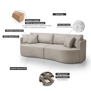 Molas Bonnel e Ensacadas com espuma D28 soft, seu encosto em fibra siliconada. Almofada decorativa acompanha o produto Produto Montado: Sim Acompanha Almofadas extras: 04 Almofada do assento: Fixa Almofada do encosto: Removível Altura do assento até o chão: 45.0000 Altura do Braço: 70 cm Altura do Encosto: 39 cm Altura dos Pés: 4 cm Altura Máxima dos Pés: 4.0000 Ambiente Principal: Sala de Estar codigo_ean: 7909903796931 Complexidade da Montagem: Baixa: pode ser montado por uma pessoa sozinha Consistência do Assento: Macio Cor: Bege Cor do Produto: Bege Densidade do Assento: D-28 Enchimento do Assento: Espuma Firmeza do Assento: Macio Informações Complementares: Peso por Assento Itens Inclusos: 1 Sofá, Kit Montagem Material dos Pés: Madeira Montagem Flex: não Necessita Montagem: Sim Nível de Conforto: Macio Origem do Produto: Nacional Peso: 80 kg Pet Friendly: Não Possui Percintas Elásticas: Sim Possui Pés: 04 Possui Rodízio: Não Recomendações de Uso, Manutenção e Limpeza: Não Utilize produtos químicos, nem aparelhos a vapor ou secador quente Revestimento do Braço: Espuma D-23 Sistema de Montagem: incluso Suporta Até (kg): 120 kg Tecido Predominante: Linho Tipo de Encosto: Regulável Tipo de Mola: Molas Bonnel Marca: Konfort King