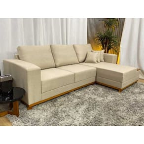 Sofá 3 Lugares 2,50 m Linho Bege Chaise Aline Plus