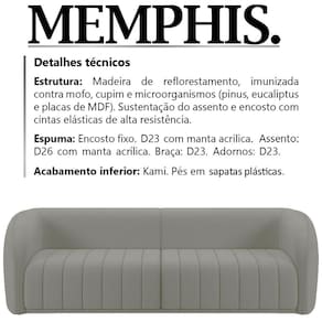 Sofa 3 Lugares 252 cm Memphis Veludo, é a escolha certa para você que busca conforto e bem-estar, tornando o ambiente em que estiver muito mais elegante e moderno. Estrutura em madeira de reflorestamento (pinus, eucaliptos e placas de MDF) e cintas elásticas de alta resistência. Composto por madeira imunizada contra mofo, cupim e microrganismos, revestimento em tecido veludo, encosto fixo em espuma D-23 com manta acrílica, assento em espuma D-26 com manta acrílica, braça em espuma D-23, adornos em espuma D-23, acabamento inferior em kami, acompanha sapatas plásticas. Suportando até 130 kg por assento. Possui design diferenciado, que oferece sofisticação, versatilidade e charme ao seu ambiente. Este móvel chegará na sua casa separado em 02 volumes.