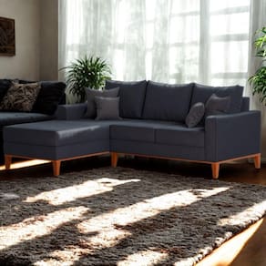Montagem: O produto vai montado, apenas rosquear os pés e encaixar a Chaise no Sofá na peça lateral.