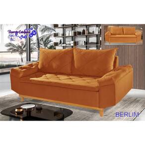 Sofá 3 Lugares Berlim Tecido Veludo 200cm A sua sala de estar só está completa na presença de um bom sofá e nada mais gostoso do que receber a família ou curtir os seus momentos de descanso junto com o modelo Berlim! Pensado para quem quer aliar bom gosto + uma estrutura reforçada para o uso diário, a peça tem madeira de reflorestamento na composição e revestimento de toque agradável com o corpo para garantir que a receptividade seja plena. Medidas: Altura: 90 cmLargura: 200 cmProfundidade: 88 cm Almofadas em Fibra de SiliconeEstrutura em Madeira Eucalipto ReflorestadoAssendo com Espuma D28Pillow nos Braços\nInformações importantes: Os objetos que ambientam as fotos não acompanham o produto.Não nos responsabilizamos pela montagem/instalação dos produtos.Montagens, desmontagens e instalações são responsabilidades do cliente.Indicamos que contrate uma empresa de montagem ou um montador de sua confiança.Além disso, favor verificar se os pés e acessórios estão dentro do forro inferior do produto.Em suma, todas as informações divulgadas sobre o produto são de responsabilidade do Fabricante.Fique atento, nossas cores podem sofrer alterações dependendo do seu monitor ou tela do seu celular.