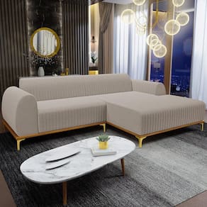 O Sofá com Chaise Direito Para Sala de Estar Molino 230cm D02 da Lyam Decor, exala formosura e elegância! Excelente opção para dispor em sua sala de estar ou espera, recepção, hall de entrada, dormitório, qualquer área de circulação ou antessala entre um cômodo e outro, as possibilidades de combinação são infinitas. Seu protagonismo é notório, sem sombra de dúvidas é perfeita para qualquer ambientação que desejar colocá-la. Com sua resistente estrutura, na cor castanho com detalhes em dourado, deixarão sua decoração ainda mais sofisticada. Oferecendo máximo conforto sem deixar de transmitir todo a magnitude que seu lar merece!