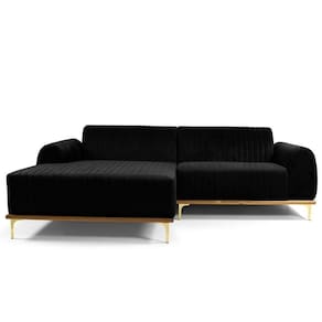 Sofá 3 Lugares Com Chaise Esquerdo Para Sala Molino 245 Cm D02 Veludo Preto C-300-lyam Decor