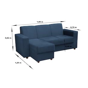 Sofá 3 lugares com Chaise Bia Esquerdo Suede Azul Madelina Decor - Azul Petróleo