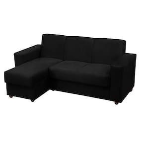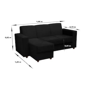Sofá 3 lugares com Chaise Bia Esquerdo Suede Preto Madelina Decor