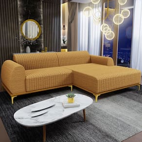 O Sofá com Chaise Direito Para Sala de Estar Molino 245cm D02 da Lyam Decor, exala formosura e elegância! Excelente opção para dispor em sua sala de estar ou espera, recepção, hall de entrada, dormitório, qualquer área de circulação ou antessala entre um cômodo e outro, as possibilidades de combinação são infinitas. Seu protagonismo é notório, sem sombra de dúvidas é perfeita para qualquer ambientação que desejar colocá-la. Com sua resistente estrutura, na cor castanho com detalhes em dourado, deixarão sua decoração ainda mais sofisticada. Oferecendo máximo conforto sem deixar de transmitir todo a magnitude que seu lar merece!
